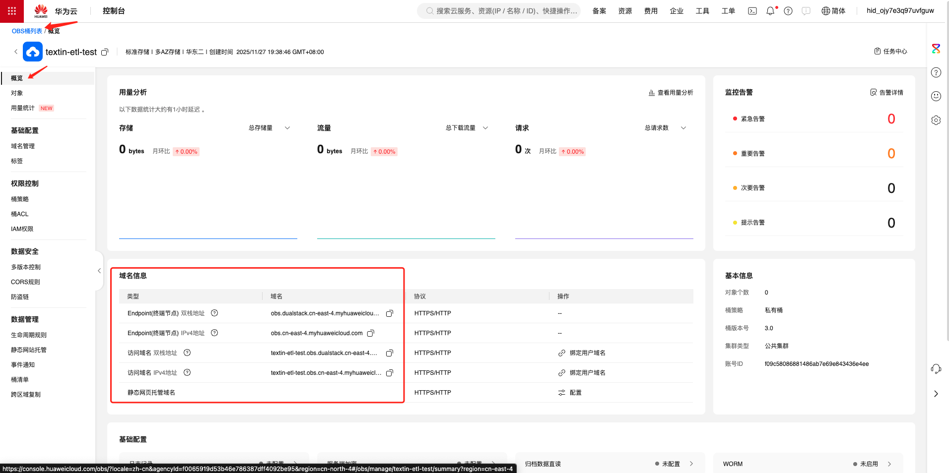 华为云 OBS(Object Storage Service)兼容 S3 协议。如何获取鉴权参数